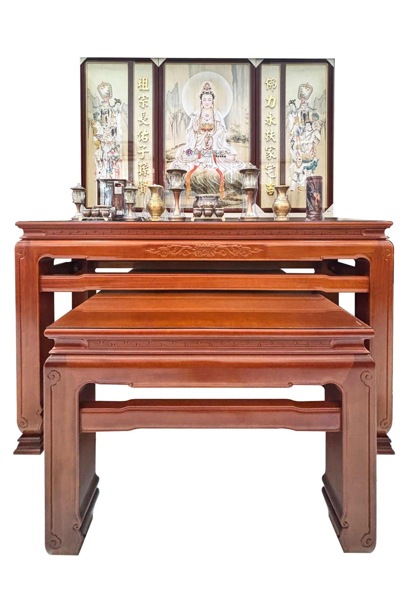 用途: 安放神主牌位、神像、祭祀物等長桌前的方形桌